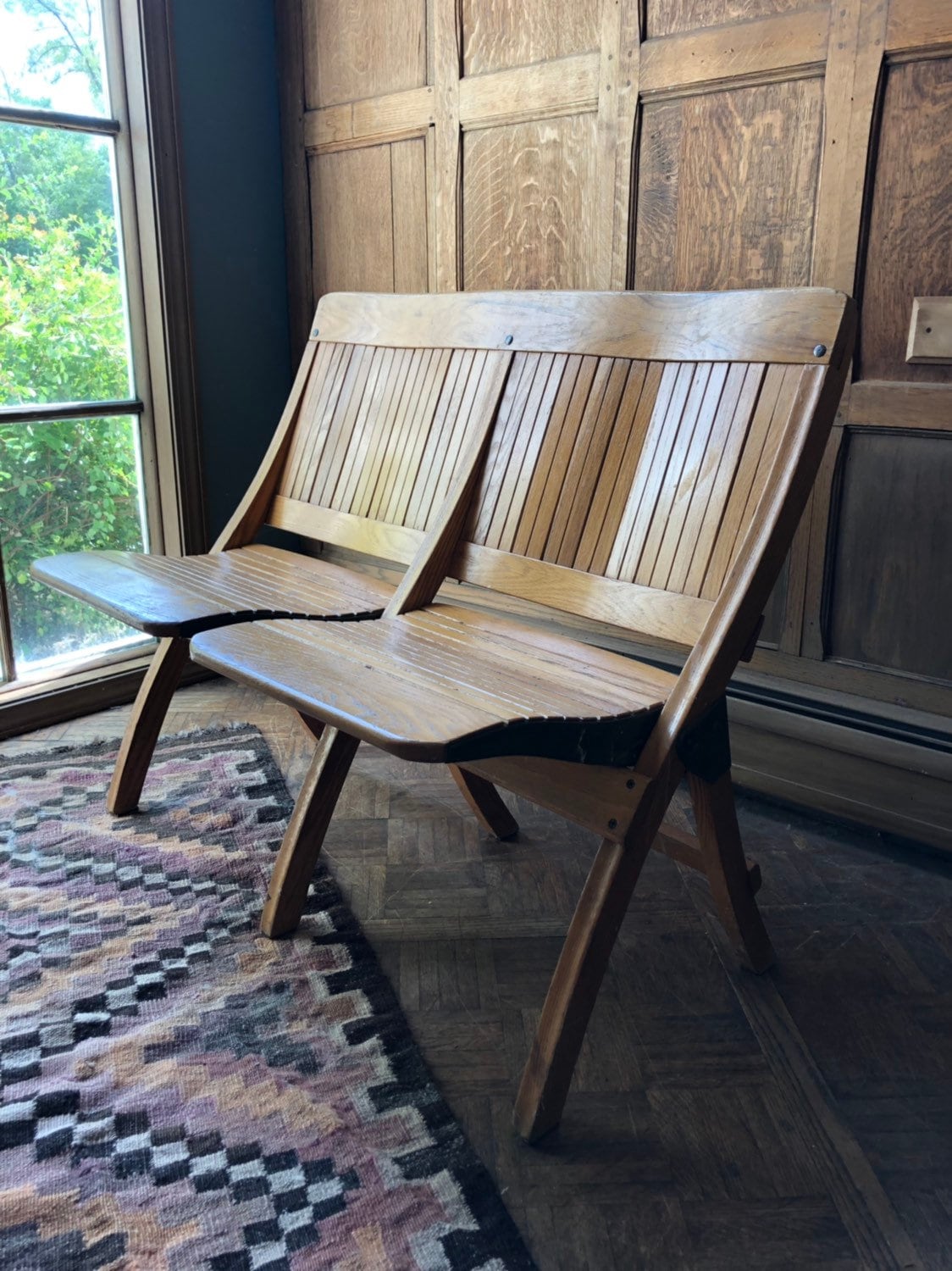 Vintage Folding Theater Seats, Wood Church Pew Bench, Entryway Seating